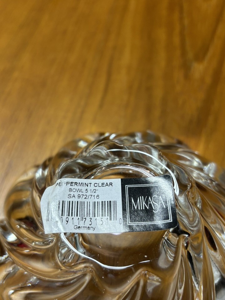Vintage Mikasa Peppermint Clear Swirl Crystal Candy/Nut Bowl