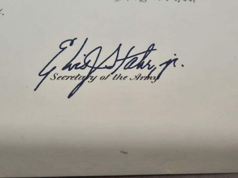 Up for bid is a 1961US Army Reserve Major promotion document by Secretary of Army Elvis Jacob Stahr Jr.