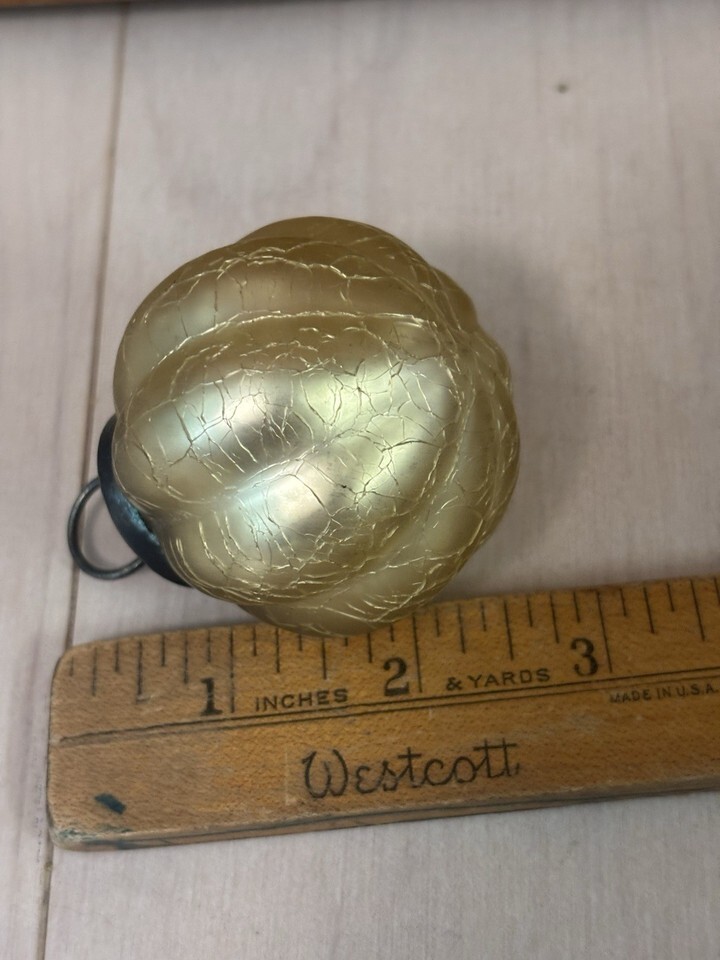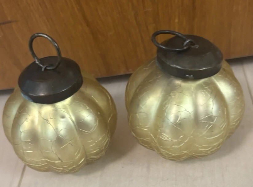 Lot of 2 Vintage “Kugel Style “Gold Crackled Glass Christmas Ornaments