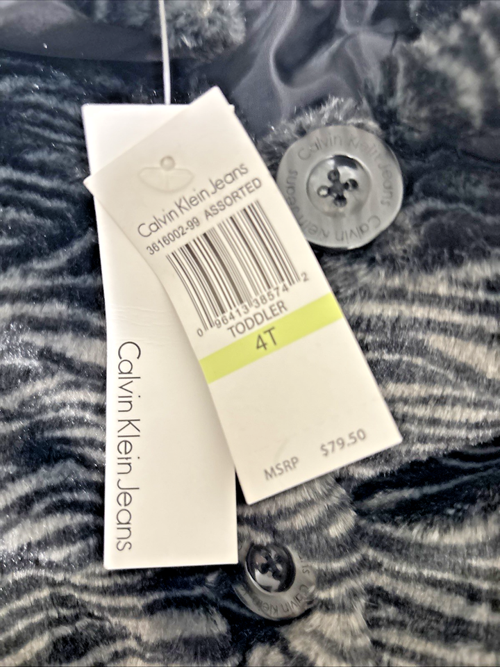 NWT Calvin Klein Jeans Toddler Girls, Faux Fur Coat Jacket Fancy US Size 4T