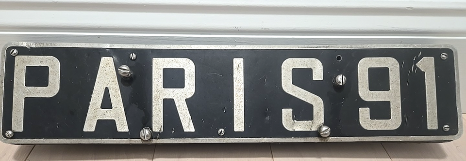 The "PARIS" marking on the plate is an indication of the vehicle's origin, which was a common feature on French plates of this era.
