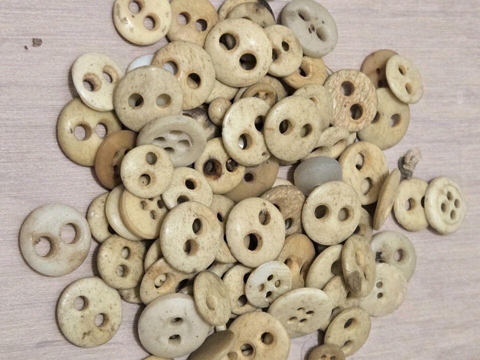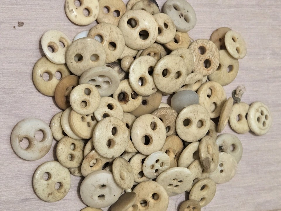 They were usually made from cow bones. Because of their humble origins, they were often used as underwear buttons.