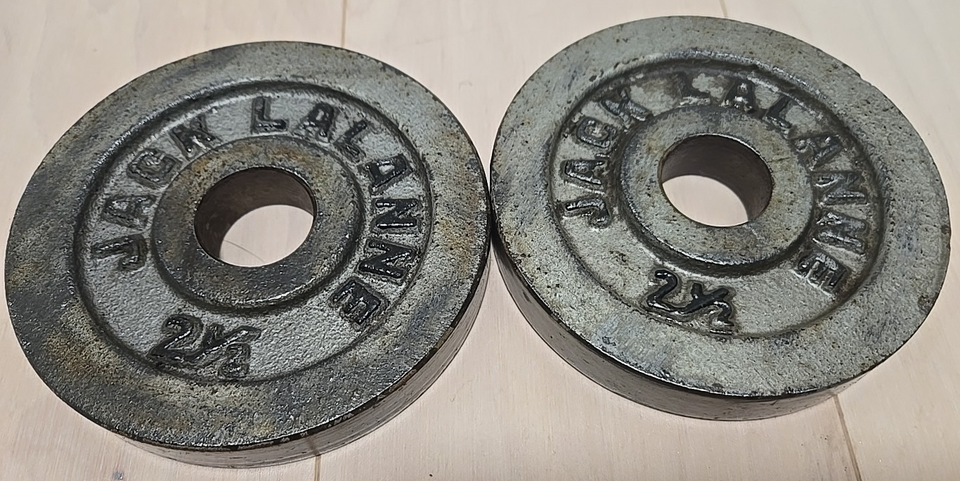 Vintage Jack Lalanne Set 2 Weight Plates 2 1/2 LBS Standard Iron Barbells