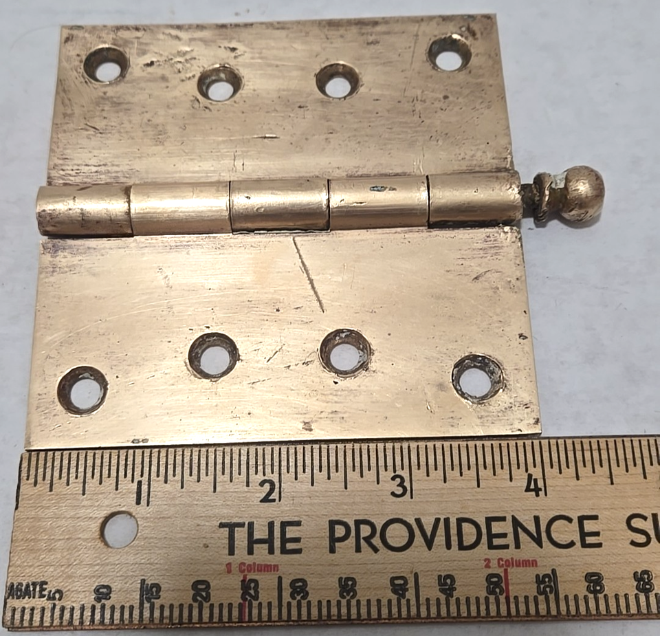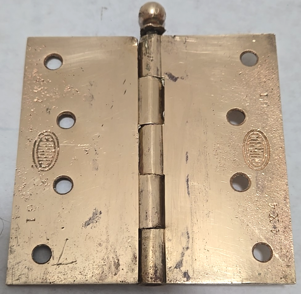 Vintage Wood 4"x 4" Corbin Brass Ball Tip Butt Door Hinge