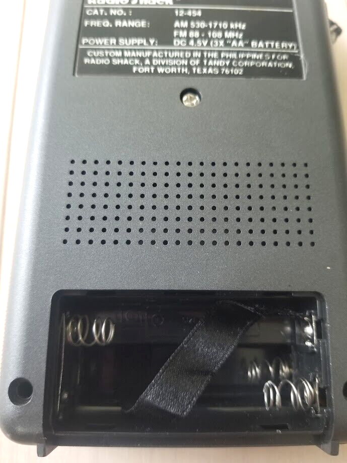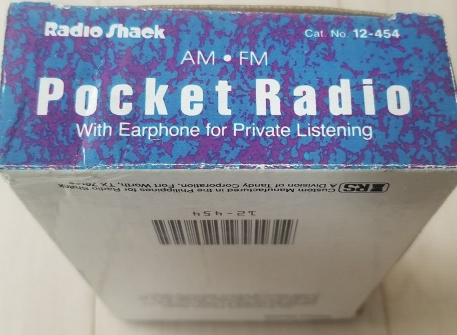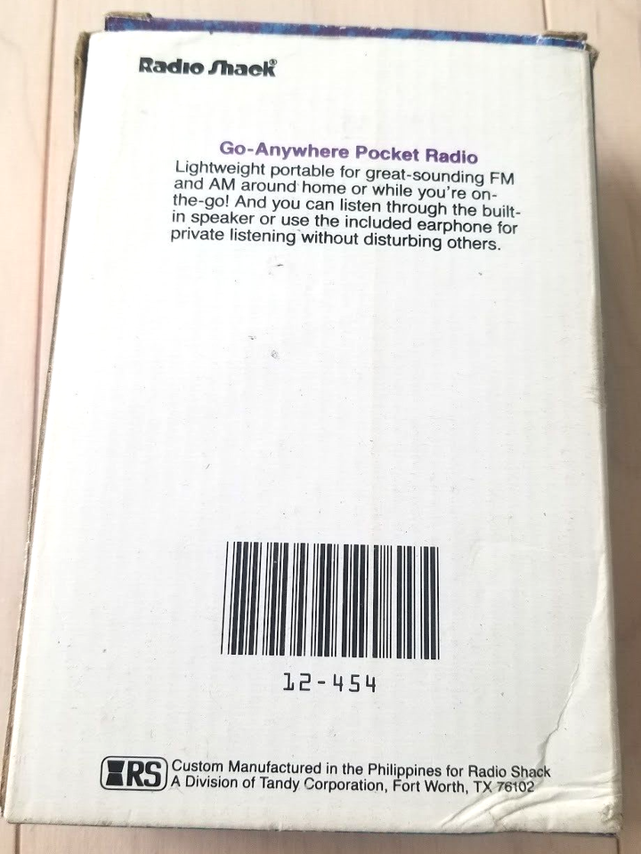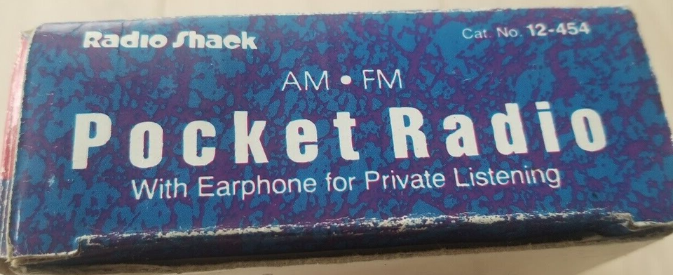 This is a vintage Radio Shack 12-454 AM/FM pocket radio that comes with its original box and instructions.