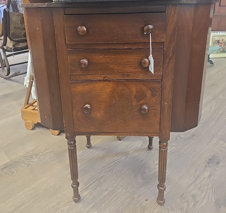 Antique Martha Washington Style 3 Drawer Flip Top Sewing Cabinet