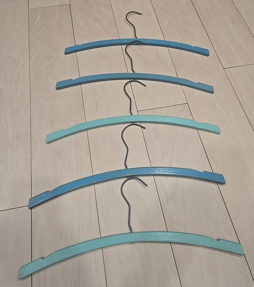 Lot of 5 Vintage Curved Blue Wood Hangers Hangers