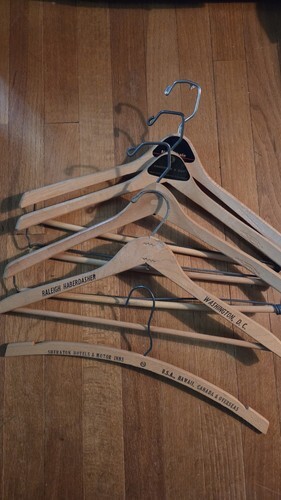 Lot of 5 Vintage Curved Blue Wood Hangers and similar items