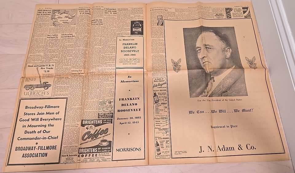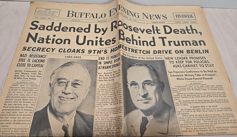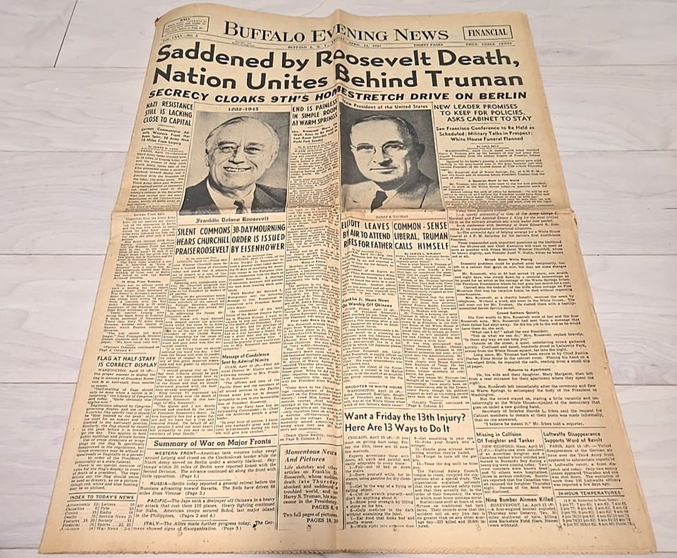 April 13, 1945 Buffalo Evening News Franklin and 50 similar items