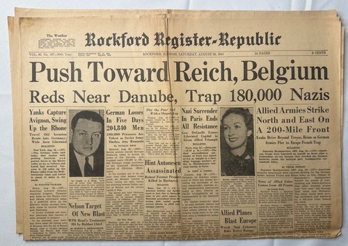 Up for bid is the April 13, 1945 issue of the Buffalo Evening News with the main story being the death of Franklin D Roosevelt
