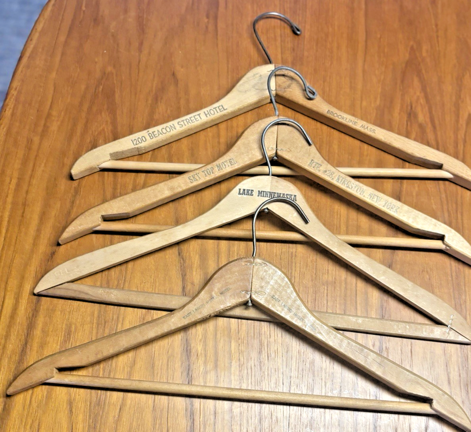 4 Vintage US Hotels/Motels Wooden Hangers