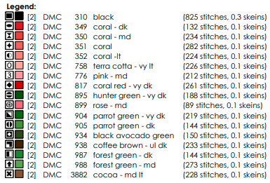 Colour Legend – DMC codes and symbols for each floss colour.
