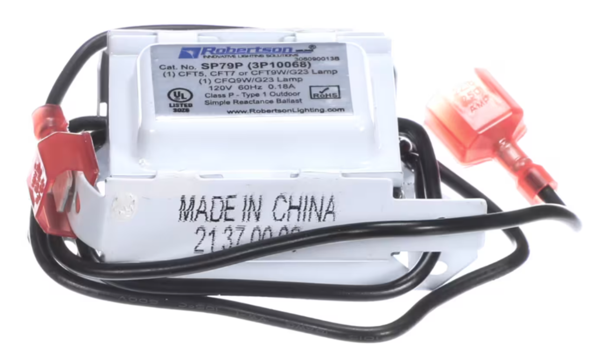 The Bunn SP79P (3P10068) / 3060900138 Light Ballast with Wire Leads is a genuine OEM replacement component designed to power and stabilize lighting systems in Bunn fresh mix dispensers. Rated for 120V, 60Hz, this ballast ensures consistent illumination for product visibility and reliable dispenser operation. Built to original factory specifications, it is ideal for restoring proper lighting performance in high-use commercial environments.