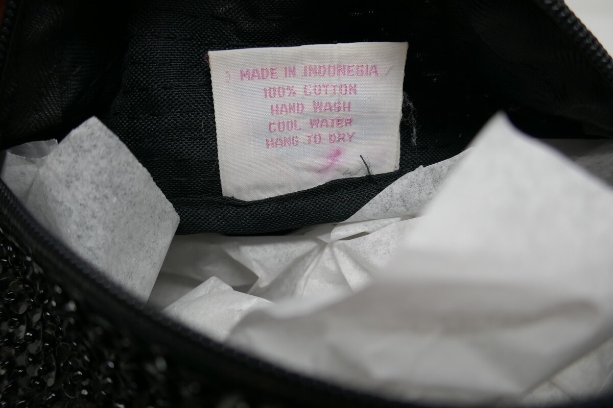 The Far Away Import Fashion Adjustable Black Sparkly Sequin Fanny Pack is a stylish accessory perfect for adding a touch of glam to any outfit. This small belt bag features a solid black exterior with sparkling sequin accents, fits waists up to 40". The adjustable strap ensures a comfortable fit, while the zip closure keeps your belongings secure. Made of cotton, this fanny pack is both fashionable and practical, making it a must-have item for any woman's wardrobe. Made in Indonesia by Far Away Import Fashions, this unique piece is sure to stand out wherever you go.