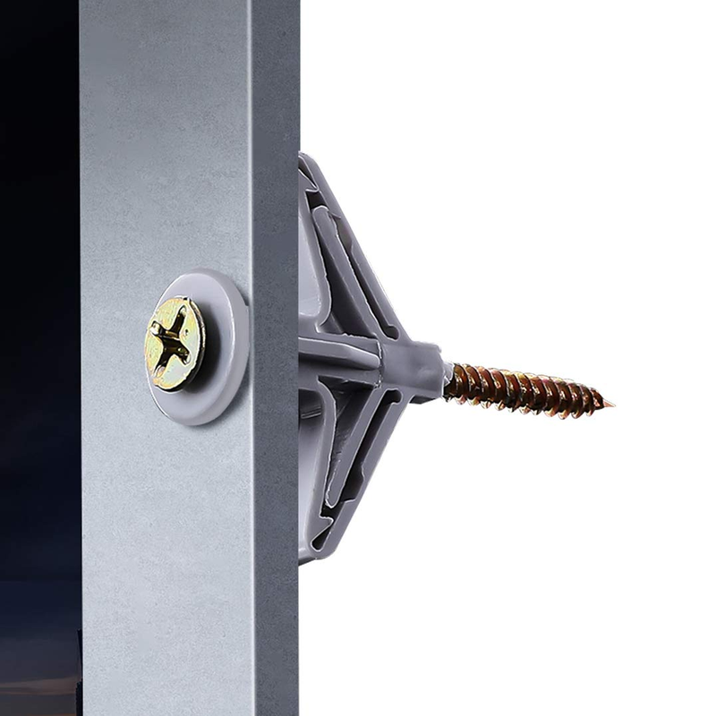 Hollow-Wall Anchors, Drywall Anchor Kit with Screws, Self-Drilling Hollow Wall Anchor, Grey, 65Lbs (One Size, Anchor 50Pcs+Screw 50Pcs)