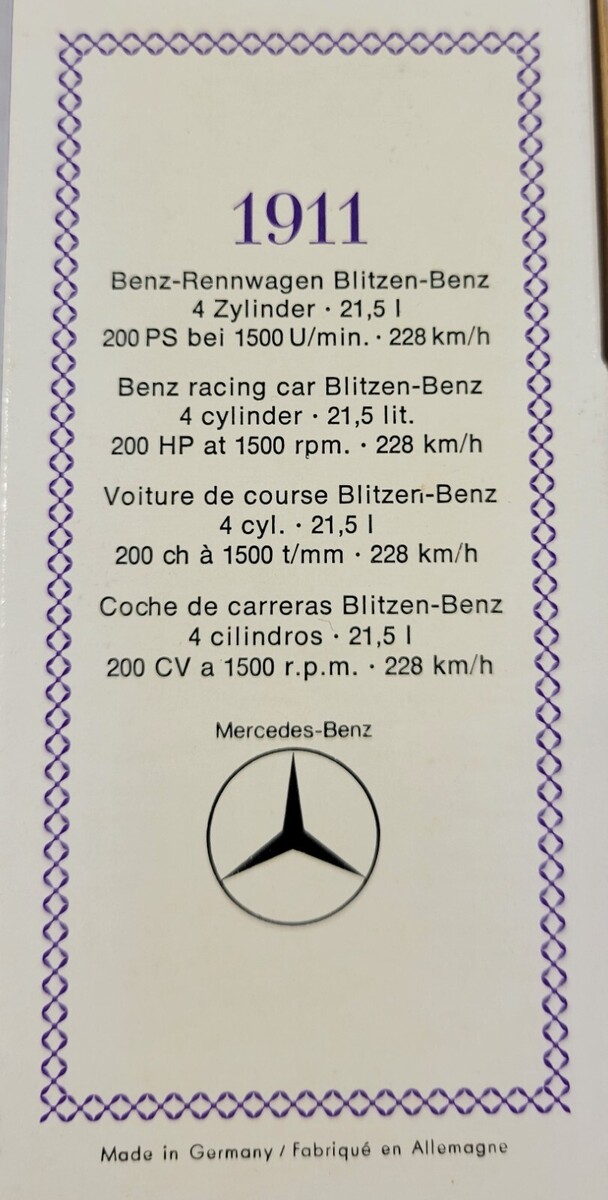 *B2) 1911 Benz-Rennwagen Blitzen-Benz Race Car Model 971 Made in Germany