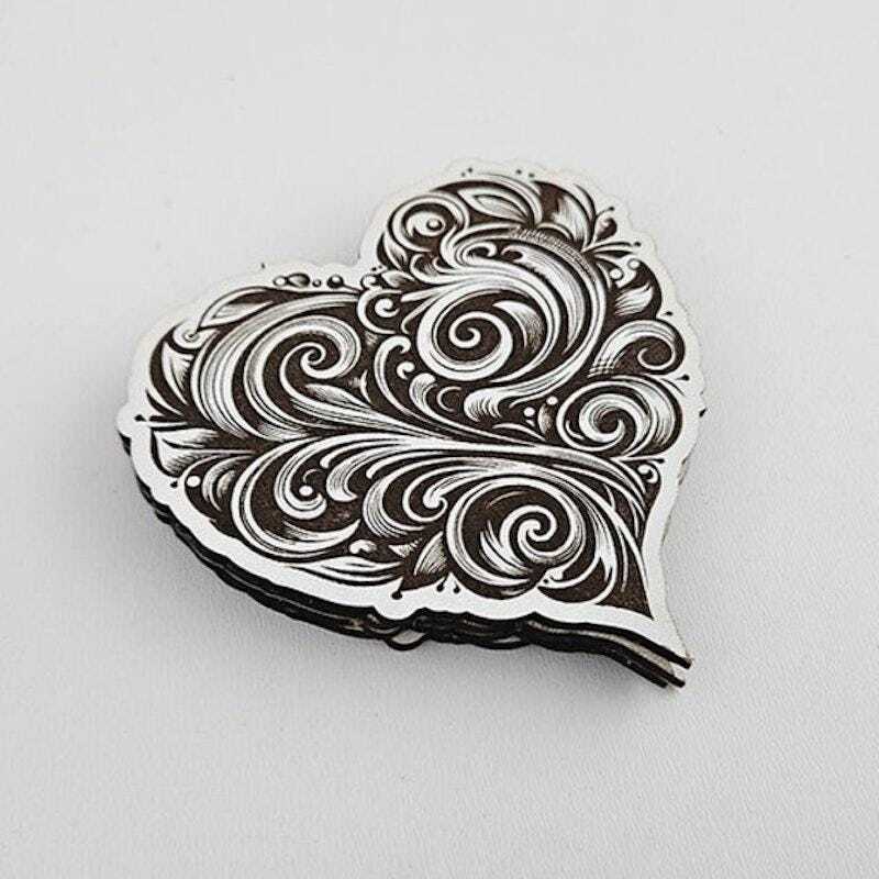 5 heart-shaped coasters, laser-cut from high-quality 3?mm MDF