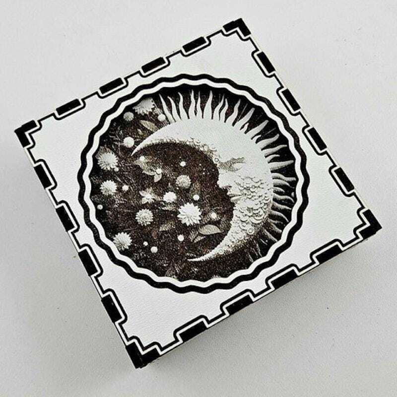 This elegant moon-themed coaster set features 6 laser-engraved wooden coasters with beautifully detailed moon phases and celestial illustrations. A perfect balance of minimalist design and mystic charm, the set includes a matching wooden storage box that makes organizing easy and stylish.