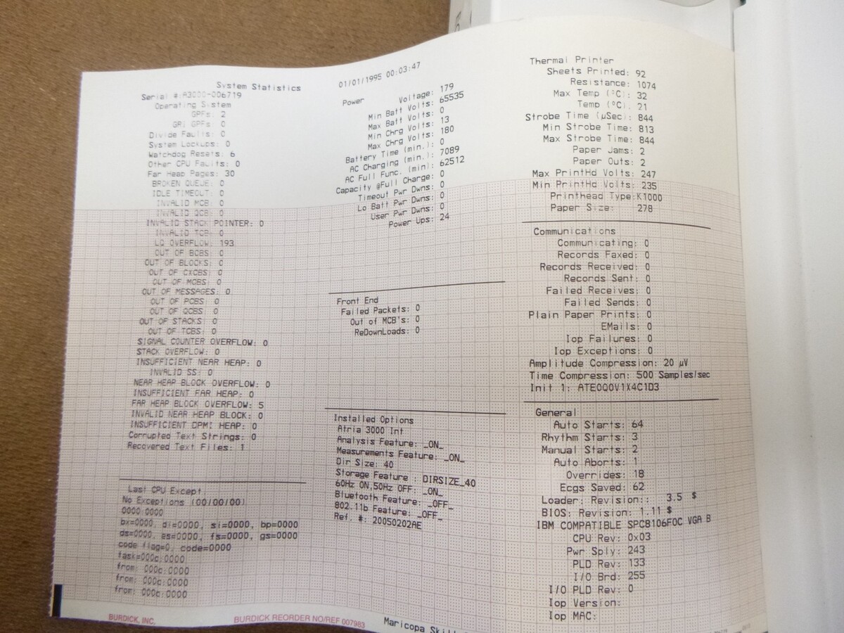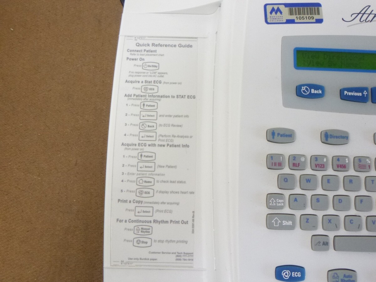 Burdick Atria 3000 ECG Machine w/ Power Adapter & Patient Cables