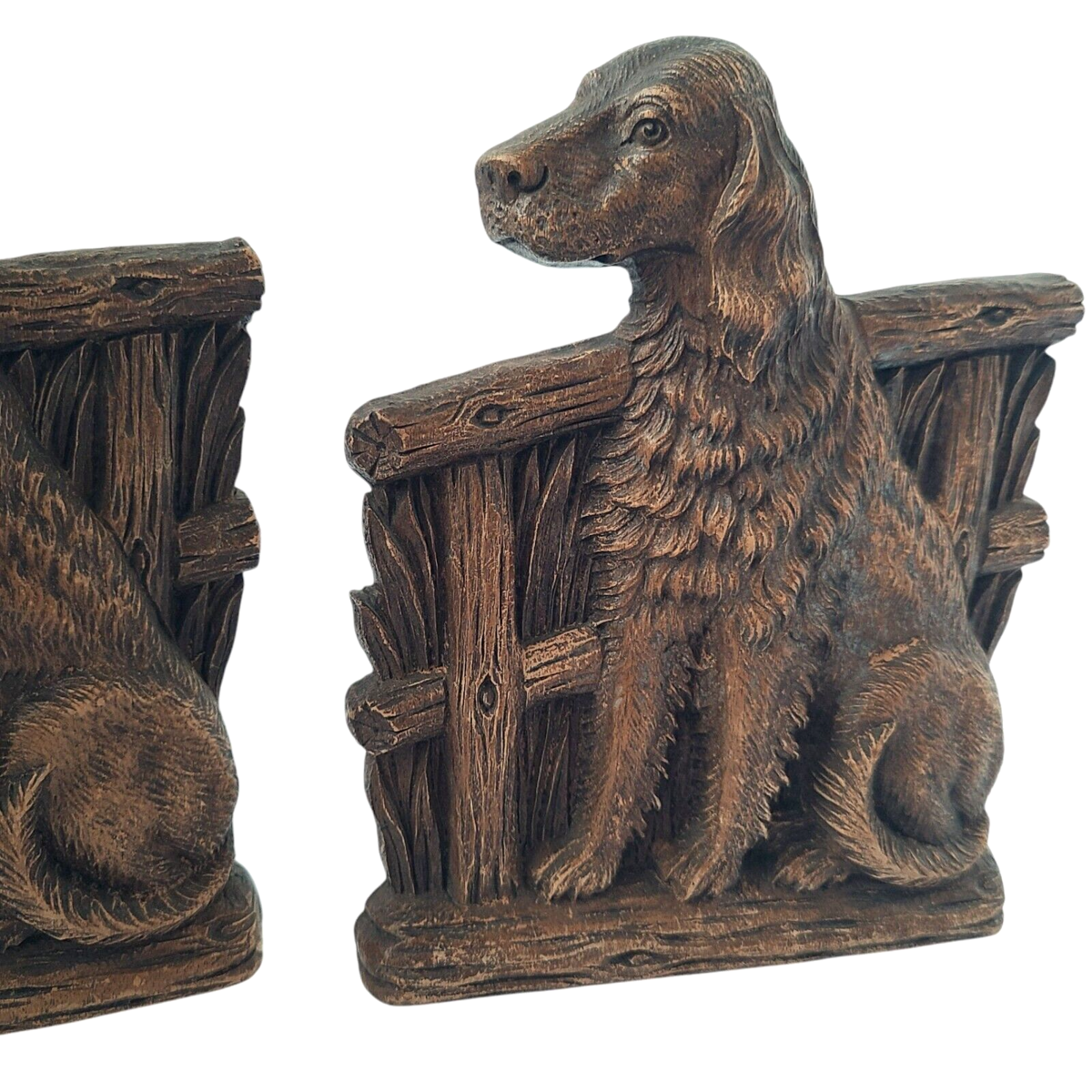 Syroco Dog Bookends Molded Wood English Setter Retriever 7" Vtg Mid Century MCM