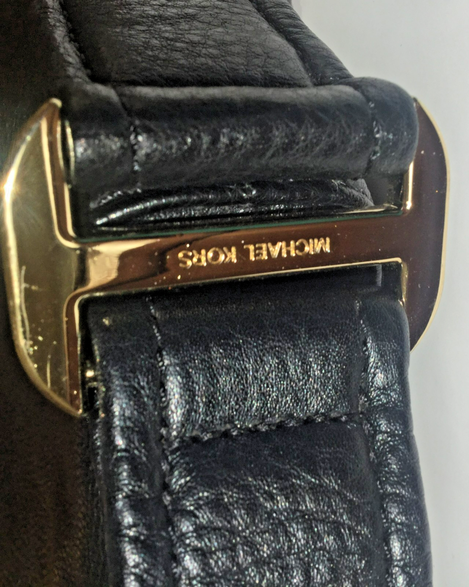 Interior: Black MK Monogram Fabric Lining, 1 Zip Pocket, 3 Slip Pockets,1 Cell Phone Pocket