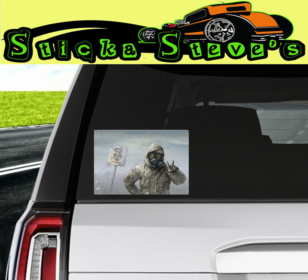 Peace Greetings Radioactive Suit Snow Blizzard Storm Mask Vinyl Sticker Decal