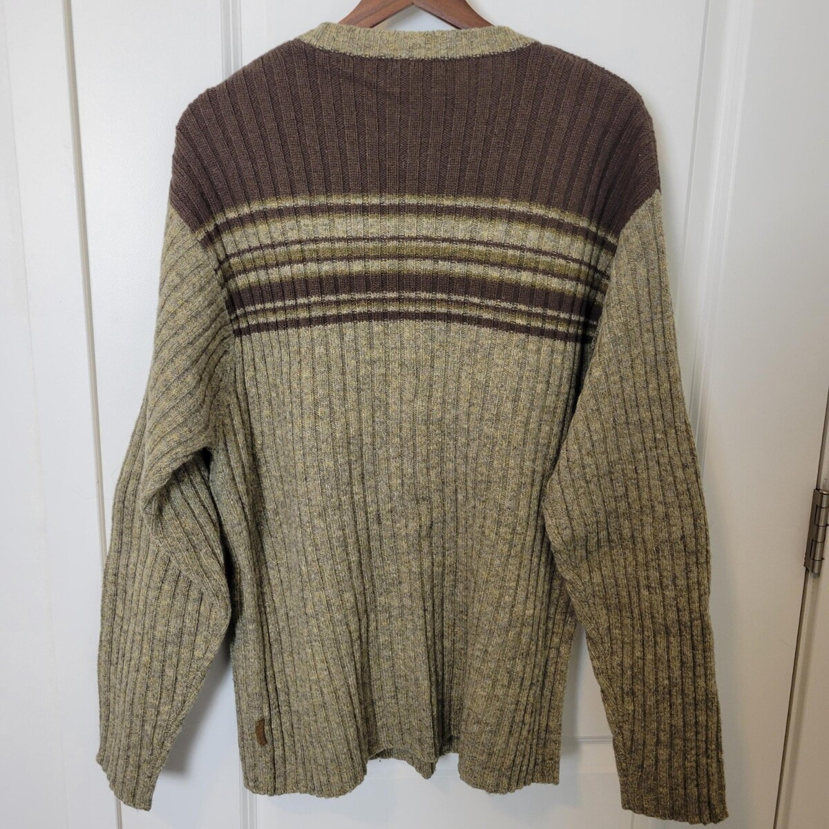 VTG Timberland Mens 100% Wool Brown Tan Ribbed Crewneck Sweater Sz L Hong Kong