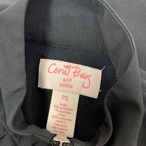 Coral Bay golf women?s zip up black jacket with pockets. Size petite small. Has vent in back.