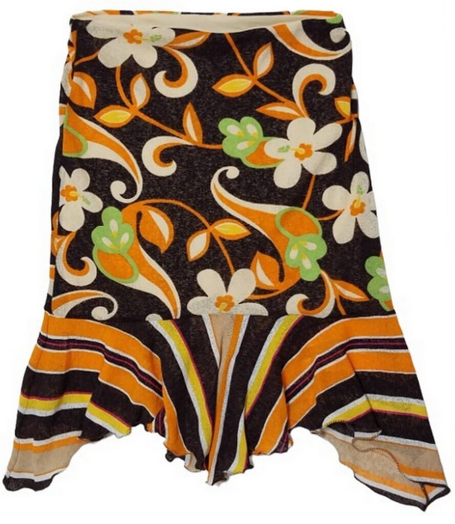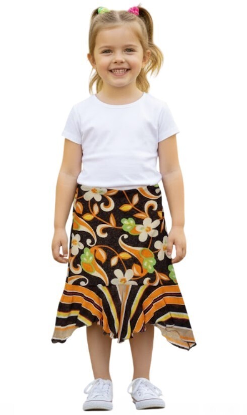 Tina Neumann Girl Handkerchief Lined Floral Print Striped Pull-on Skirt (6) NWOT