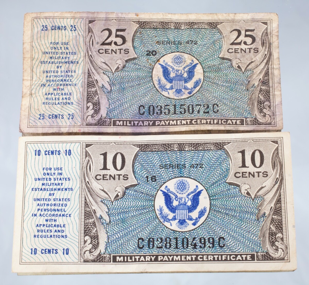 Lot of 4 US Military Payment Certificates (5C - 25C, Fine - XF Condition)