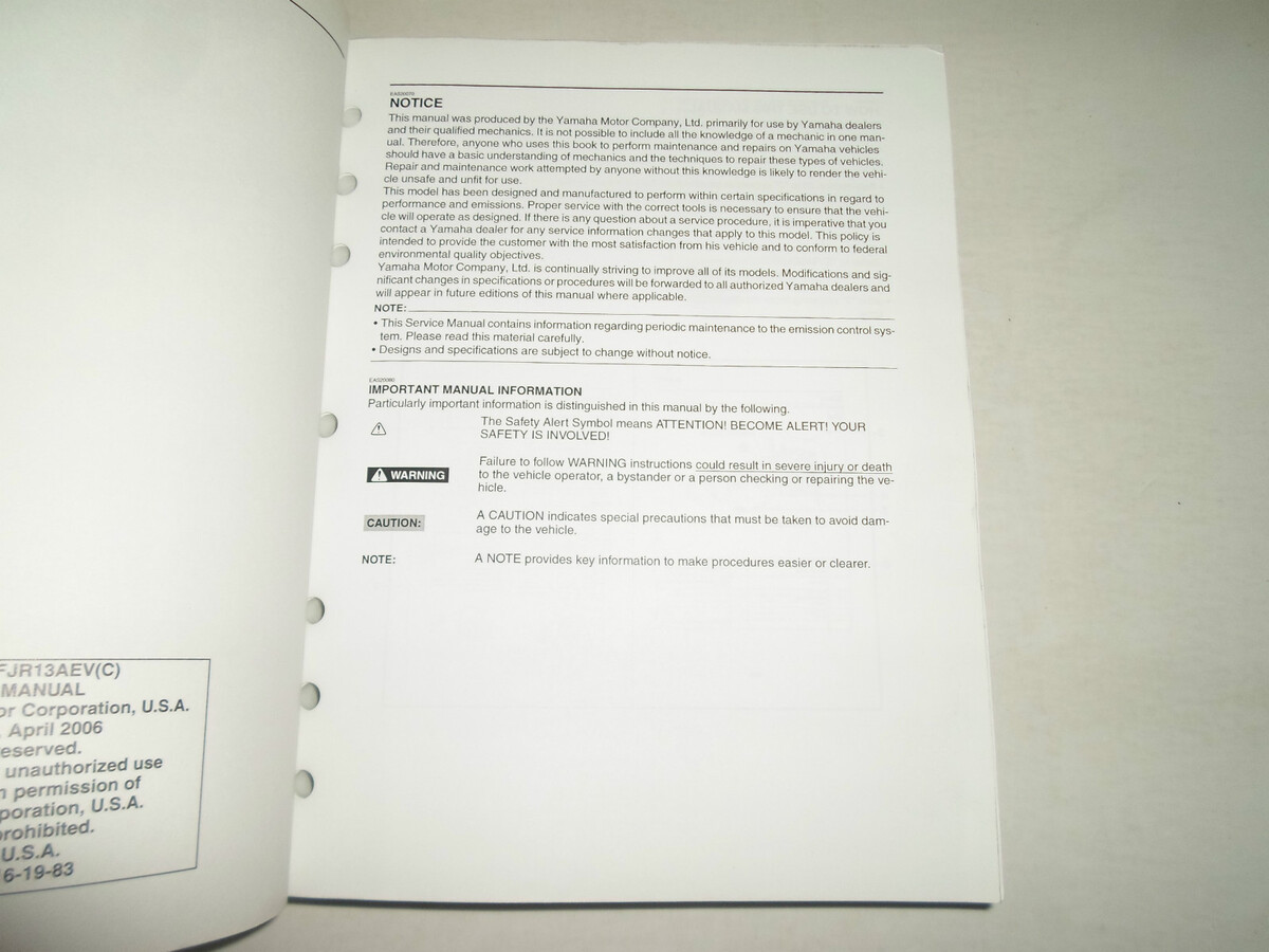 2006 2007 Yamaha FJR13AV FJR13AEV (C) Service Repair Shop Manual NEW