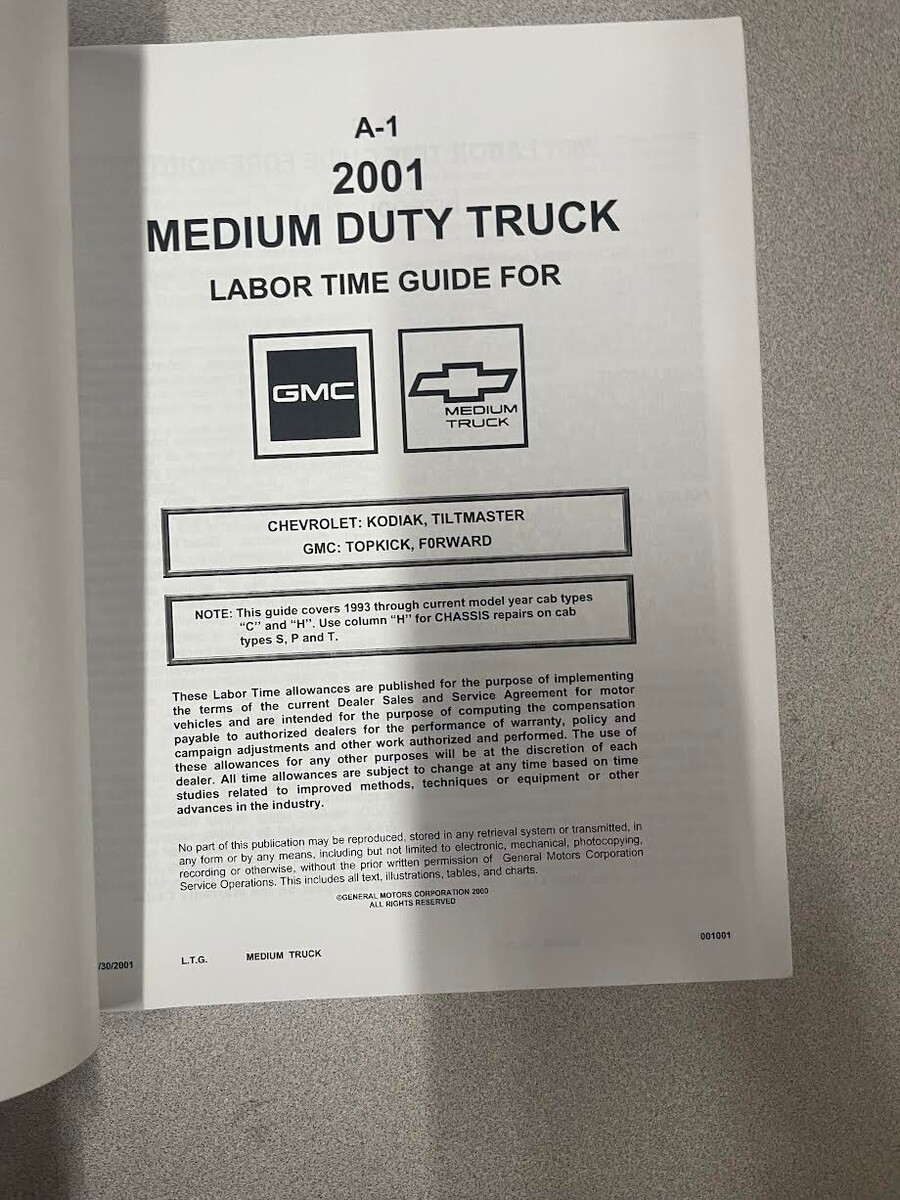 2001 GMC Topkick Forward Tiltmaster Chevy Kodiak Labor Time Guide Manual OEM