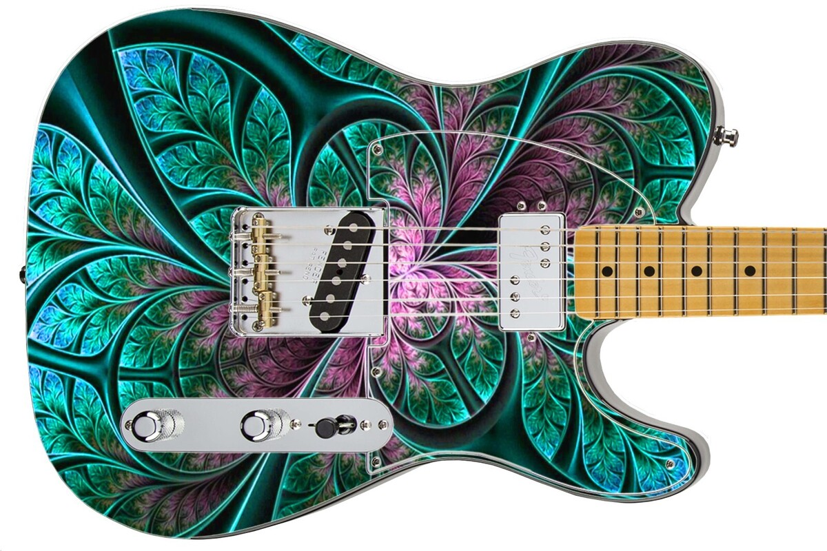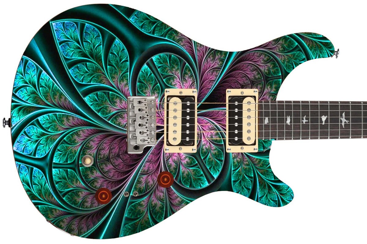 Guitar Skin Axe Wrap Re-skin Blue Green Lavender Pink Leaf 2 Time Trapped 1175
