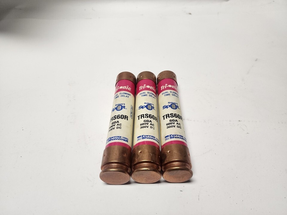 Lot of 3 Ferraz Shawmut Smart Spot TRS60R Time Delay Fuse 60amp. 600 V. Current Limiting Dual Element Class RK5