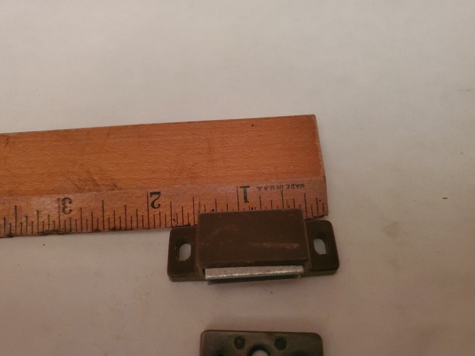 Box of 12 Brown magnetic cabinet door catches and screws these came from a now closed factory they may have some dust on them