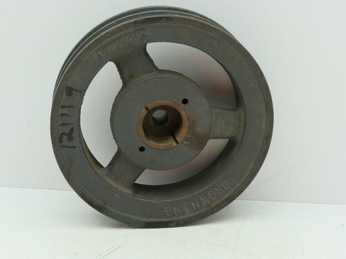 Used pulley bushing has a 1-1/8" bore 2 groove pulley is 3 3/4 dia. [bushing flush with edge]