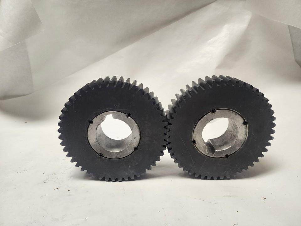 Pair of Unbranded Spur Gears 47 Teeth 50MM Bore matches up to 20deg PA 8 Pitch.