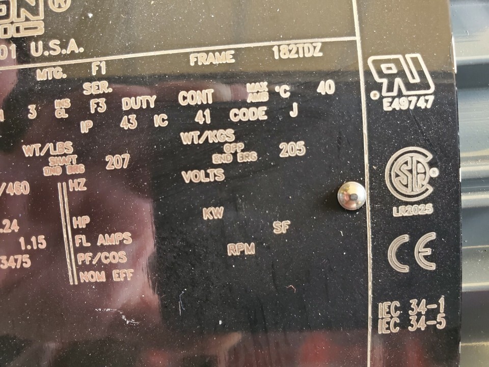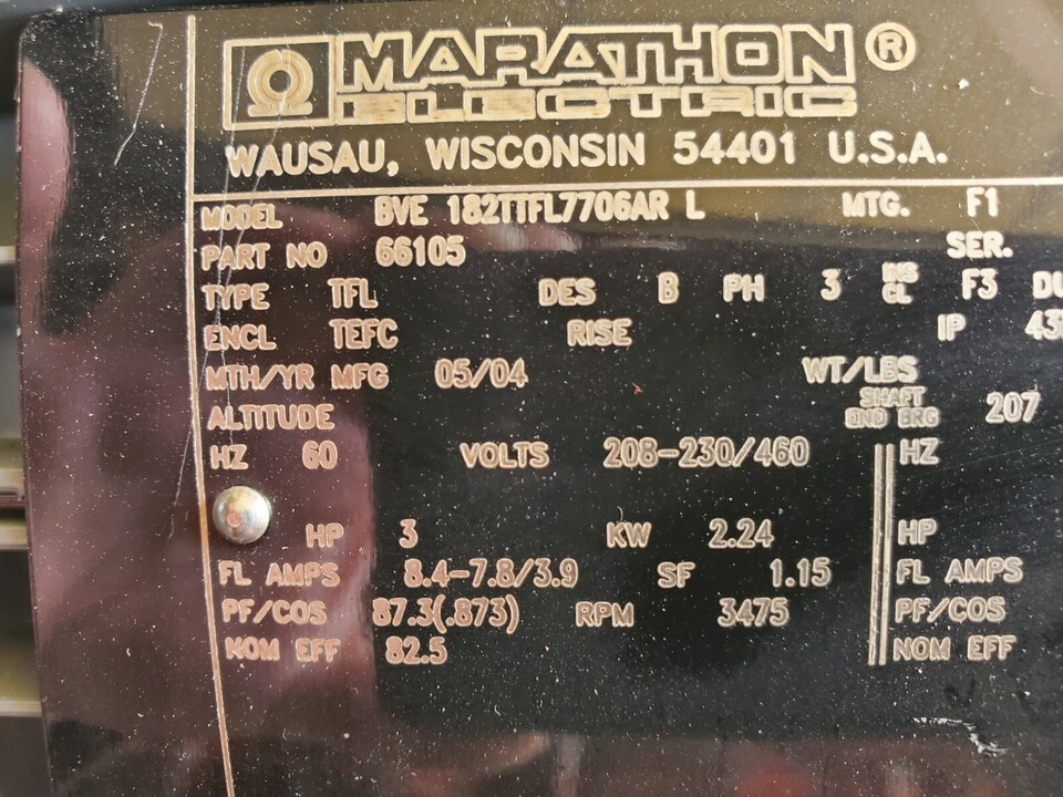 Marathon 3 HP 3 PH 3475 RPM TEFC Inverter Duty Electric Motor 182TDZ Frame According to the machine dealer that this came from it fits a PBS 440 Bandsaw but probably will fit other applications.