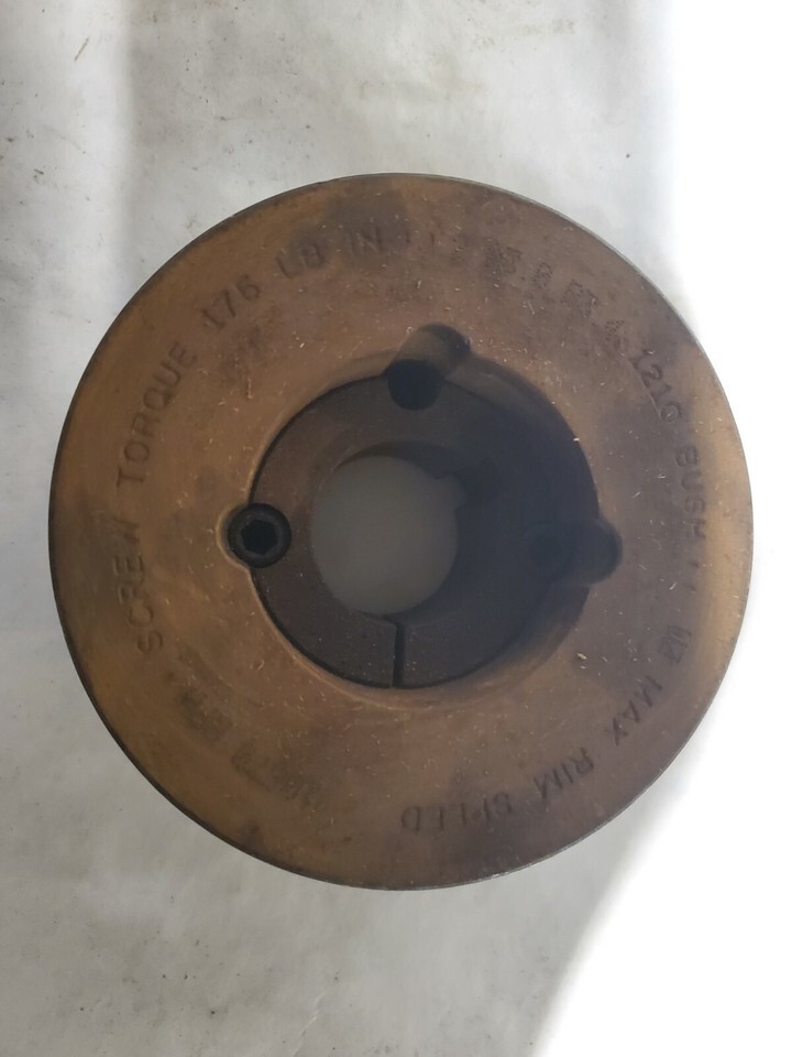 Used pulley bushing has a 1-1/8" bore 2 groove pulley is 3 3/4 dia [bushing recessed]