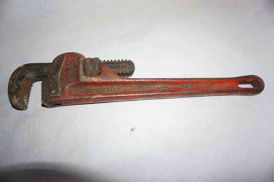 Used Ridgid heavy duty 14" pipe wrench as pictured