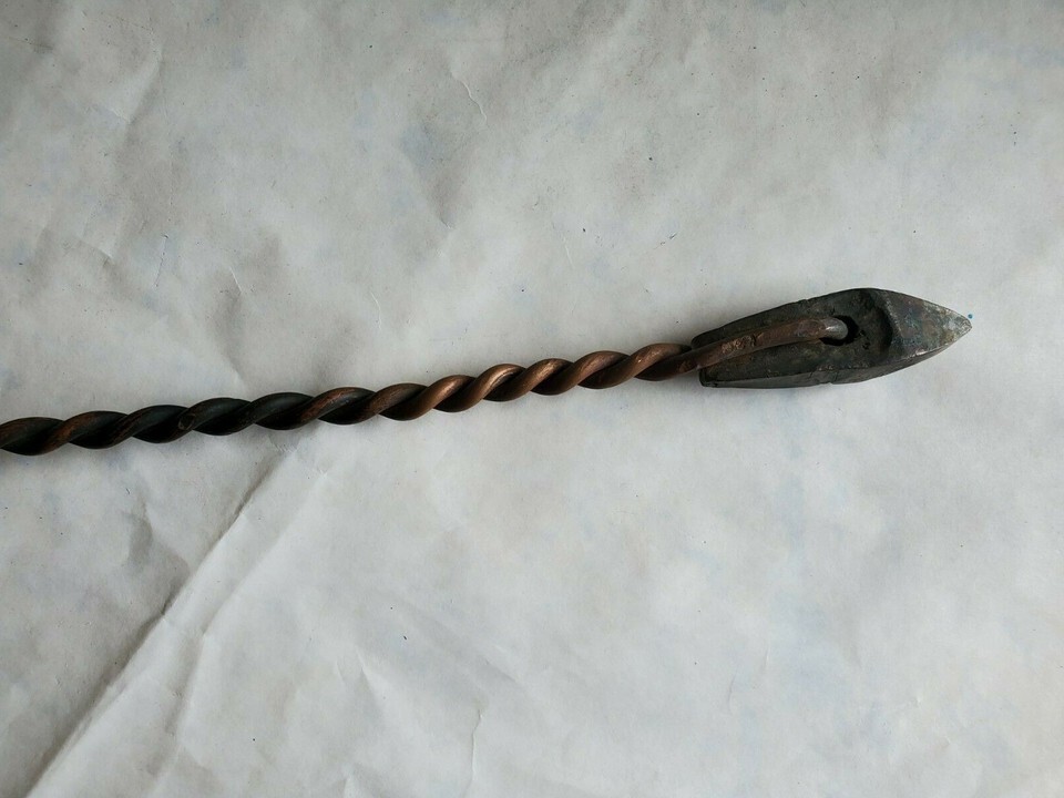 Vintage / Antique Twisted Handle Soldering Iron about 15-3/4" long from soldering tip to end of handle hanging loop