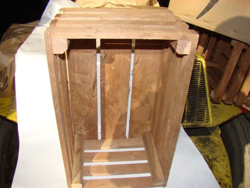 1/2-bushel crate made out of Black Walnut measures 18" L x 11 1/4"W x 8 1/2"H I have 10 of these so the one in the picture is just an example of what you are getting all the boxes are the same just the wood may have different character.