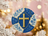 Bring heartfelt accents to your tree, like this Now I Lay Me Down To Sleep Cross Ornament. This ceramic ornament is in the shape of a cross with a sweet little teddy bear sitting at the bottom. At the top is a meaningful phrase about the Lord. Use the included white ribbon to hang this alongside other meaningful ornaments.