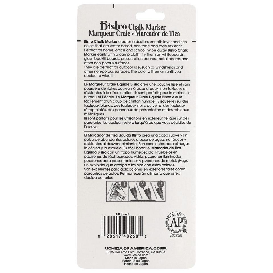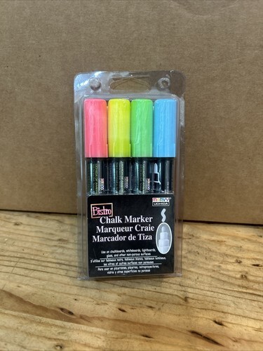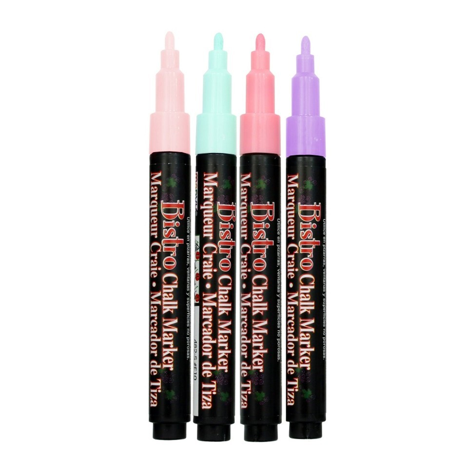 Marvy Uchida Bistro Chalk Markers, Fine Tip, Pastel Colors, 4-Pack