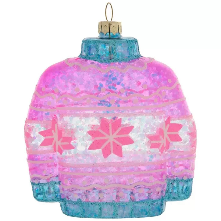 Style your entryway Christmas tree with this cozy Holiday Sweater Ornament! This novelty ornament makes the perfect hostess gift that they will decorate with for years to come. It is shaped like a sweater decorated with vibrant colors, patterns, and glitter. Plus, the center strip of the piece is filled with iridescent confetti. Add a cozy touch to your holiday decor with this ornament!