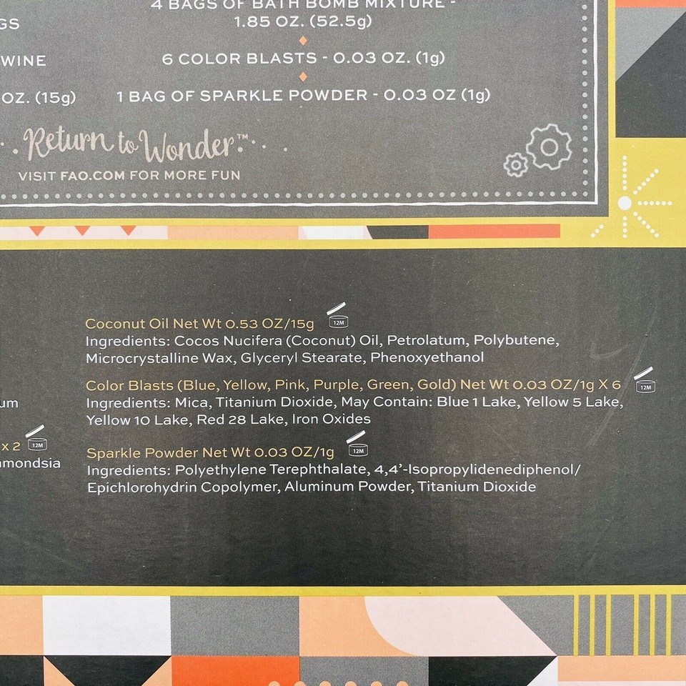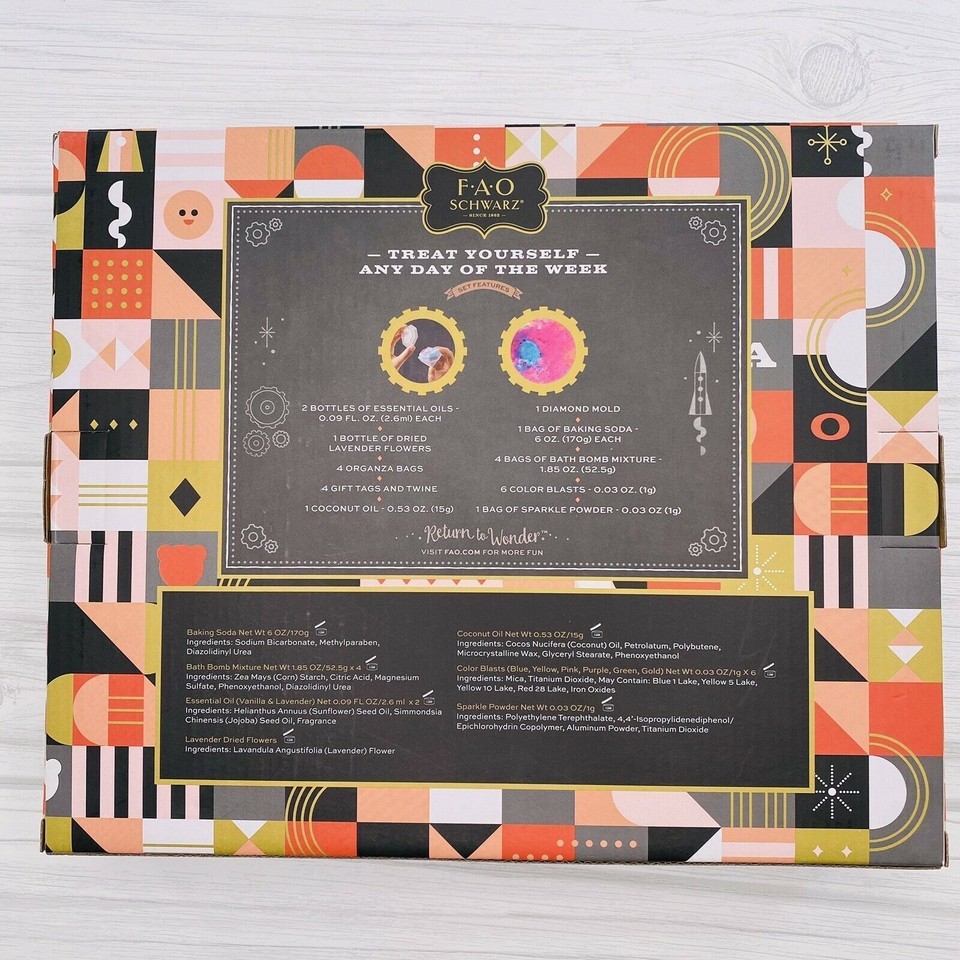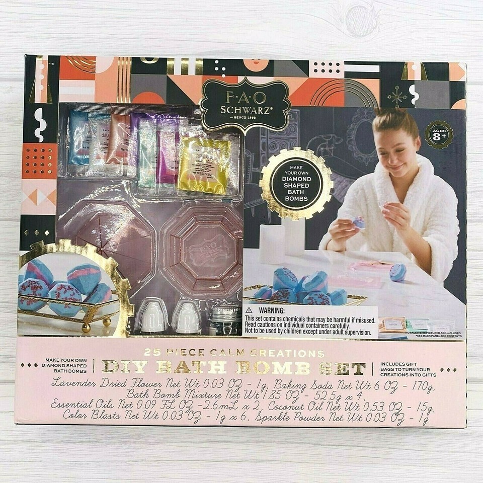 FAO Schwarz Calm Creations Spa-Ready Bath Bomb Set for Kids 25 Piece Item Notes: Design and craft your own bath bombs! Theres no better way to relax. The fizzy bubbles. Pleasing aroma. Fun sparkles. This kit comes with everything you need to make real, high-quality bath bombs. Plus, it even comes with gift bags, tags, and twine to... Due to variances in monitor color, and lighting, the color of some items may differ slightly from the photographs About us: Vanessa Jane is a family-owned business based in Indiana. We sell only authentic merchandise from brand new to used, and list new inventory daily. Make sure to put us on your favorites to see what's new each day! We source all of our inventory from reputable sales channels, including: Macy's Amazon Walmart Home Depot Office Depot Lowes Build.com And many more Box G62 (SEALED-8) Box S4 (SEALED-7) Box S4 (SEALED-6) Box S4 (SEALED-5) Box S4 (SEALED-4) Box S4 (SEALED-3) Box S4 (SEALED-2) Box S4 (SEALED-1)Relisted: by Martha RusselListing SKU: VJ4784866689109 Item Notes: Design and craft your own bath bombs! Theres no better way to relax. The fizzy bubbles. Pleasing aroma. Fun sparkles. This kit comes with everything you need to make real, high-quality bath bombs. Plus, it even comes with gift bags, tags, and twine to... Due to variances in monitor color, and lighting, the color of some items may differ slightly from the photographs About us: Vanessa Jane is a family-owned business based in Indiana. We sell only authentic merchandise from brand new to used, and list new inventory daily. Make sure to put us on your favorites to see what's new each day! We source all of our inventory from reputable sales channels, including: Macy's Amazon Walmart Home Depot Office Depot Lowes Build.com And many more Box G62 (SEALED-8) Box S4 (SEALED-7) Box S4 (SEALED-6) Box S4 (SEALED-5) Box S4 (SEALED-4) Box S4 (SEALED-3) Box S4 (SEALED-2) Box S4 (SEALED-1)Relisted: by Martha RusselListing SKU: VJ4784866689109integration by