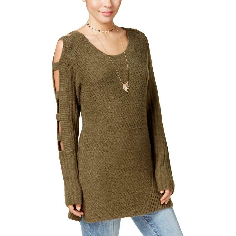 Crave Fame by Almost Famous Ladder-Sleeve Sweater, Soft Olive, Size Extra Large