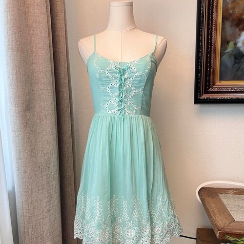 Aqua Printed Eyelet Mini Dress, Size Small and 50 similar items