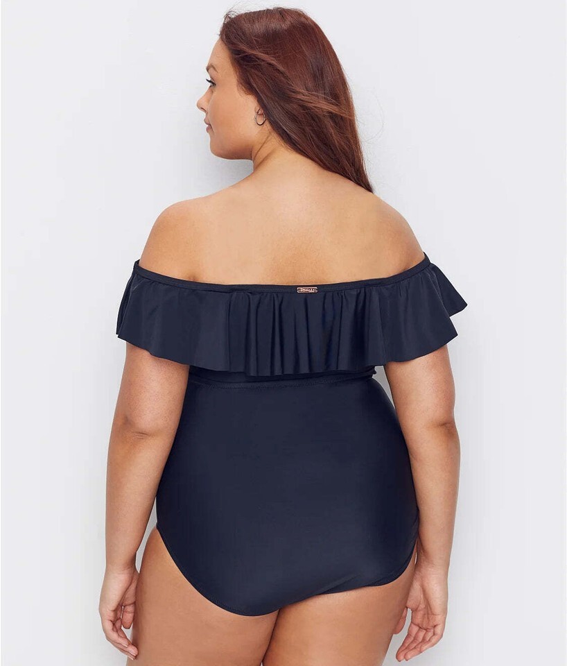 Features: Raisins Curve offers an incredible assortment of swim styles for the curvy and the confident. These fashion-forward styles are supportive so youll look as fabulous as you feel. Stand out this season in this off-the-shoulder one-piece. Supportive, built-in foam contour cups with side boning. Adjustable straps included for multiple wear options. Luxe, fully-lined stretch microfiber. Style #: C840080 Nylon/Spandex Lining: Polyester Imported