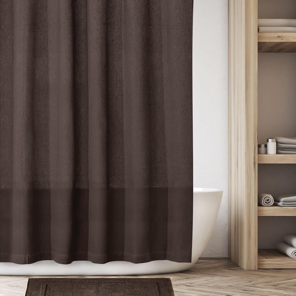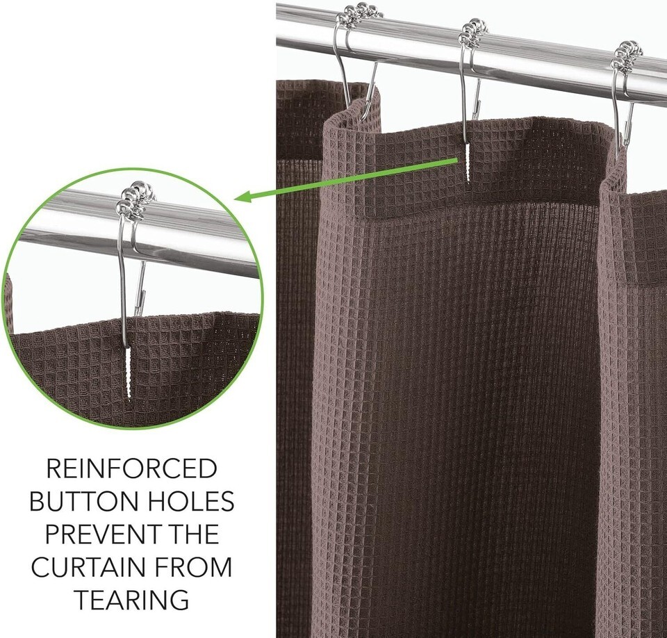 Waffle Weave Fabric Shower Curtain Heavyweight 230 GSM, Hotel Luxury